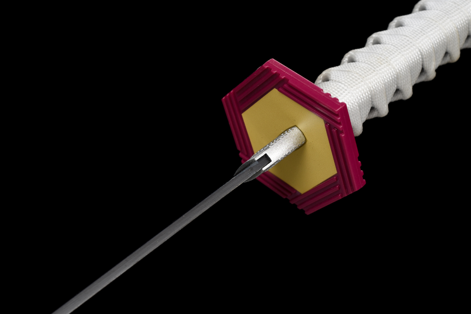 Poignée (Tsuka 柄) — Le cordon blanc enroulé assure confort et équilibre lors de l'utilisation.