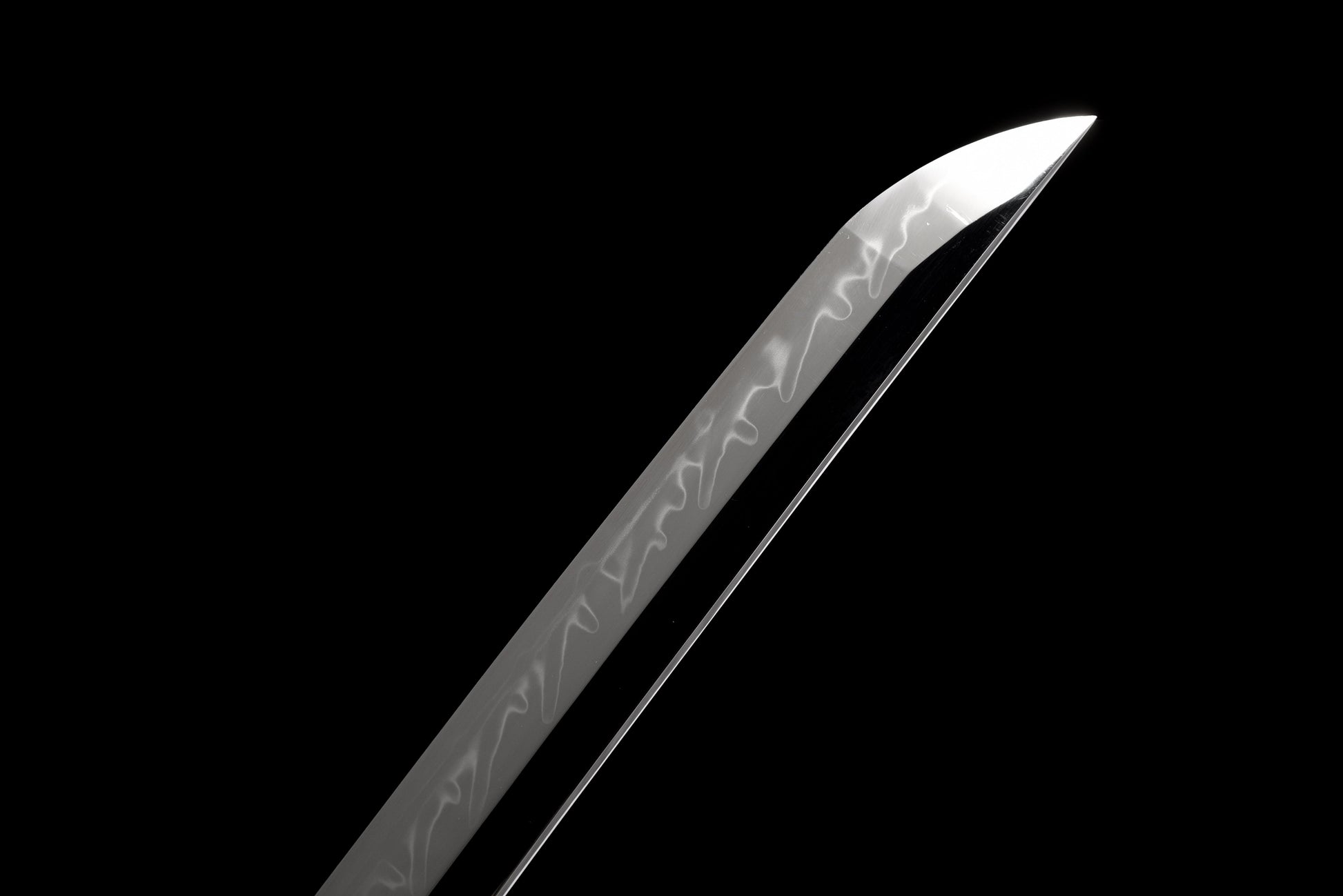 Lame (刀身) : Forgée en acier T10 de première qualité, la lame présente une finition visible Hamon et polissage miroir, offrant à la fois une précision de coupe et un reflet hypnotisant.