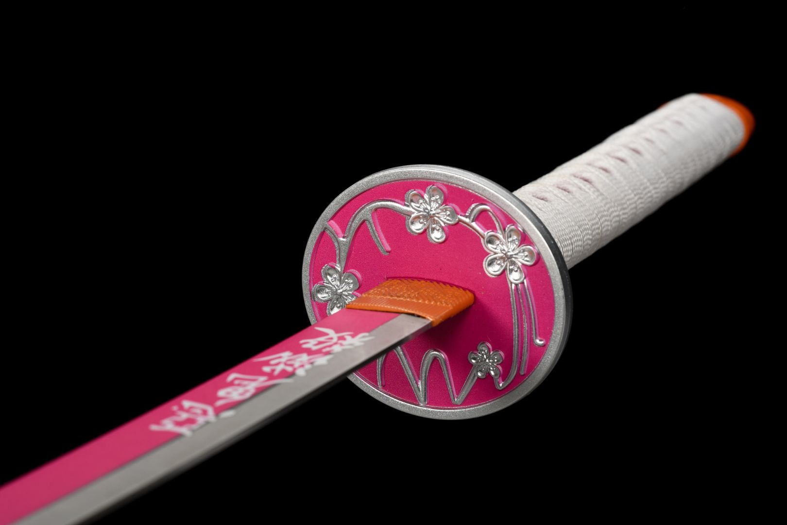 Lame (Kissaki 刃) — Fabriquée en acier au carbone 1060, avec un tranchant rose représentant la force tranquille et la beauté intérieure de Tsuyuri Kanao.
