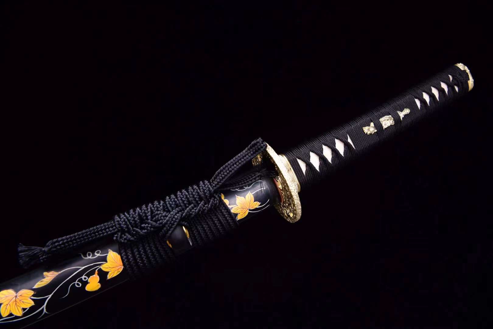 | Fourreau (Saya 鞘) | Saya laqué noir peint à la main avec des feuilles d'érable dorées et de délicats motifs de vigne |
