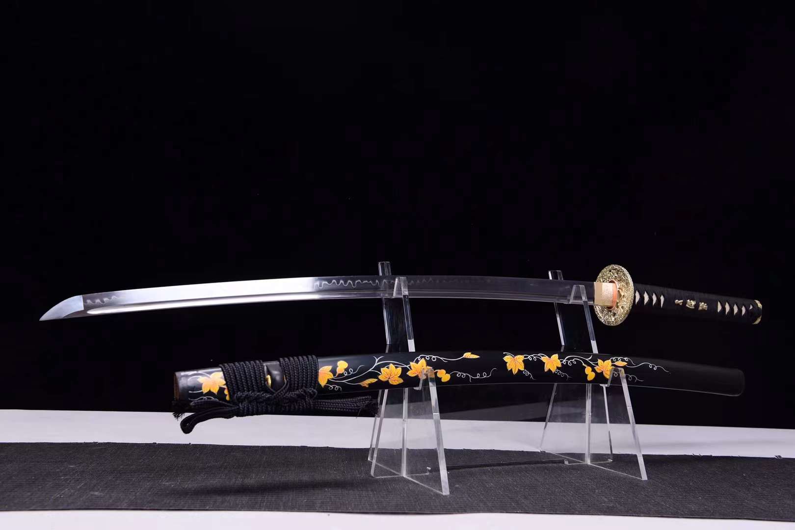 Le Kōyō Katana (紅葉), qui signifie « Feuilles d’automne », est une pièce à couper le souffle inspirée par le feuillage vibrant des érables du Japon. Son design capture la beauté sereine de la nature au plus fort de l'automne, symbolisant à la fois la transformation et la tranquillité.