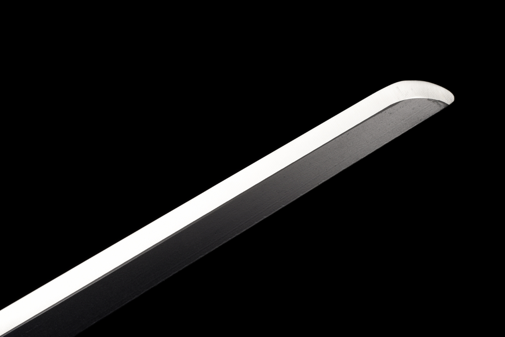 | Lame (Kissaki 刃) | Lame en acier au carbone 1060 noir, à tranchant droit et finition miroir | ||